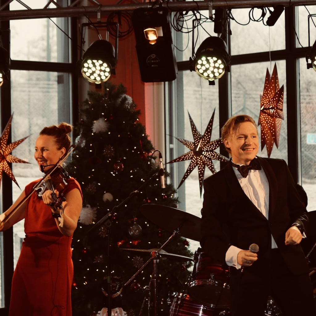 En sångare och pianist skapar atmosfär – oavsett om det är allsång eller mingelmusik. Ett tidlöst och uppskattat val.