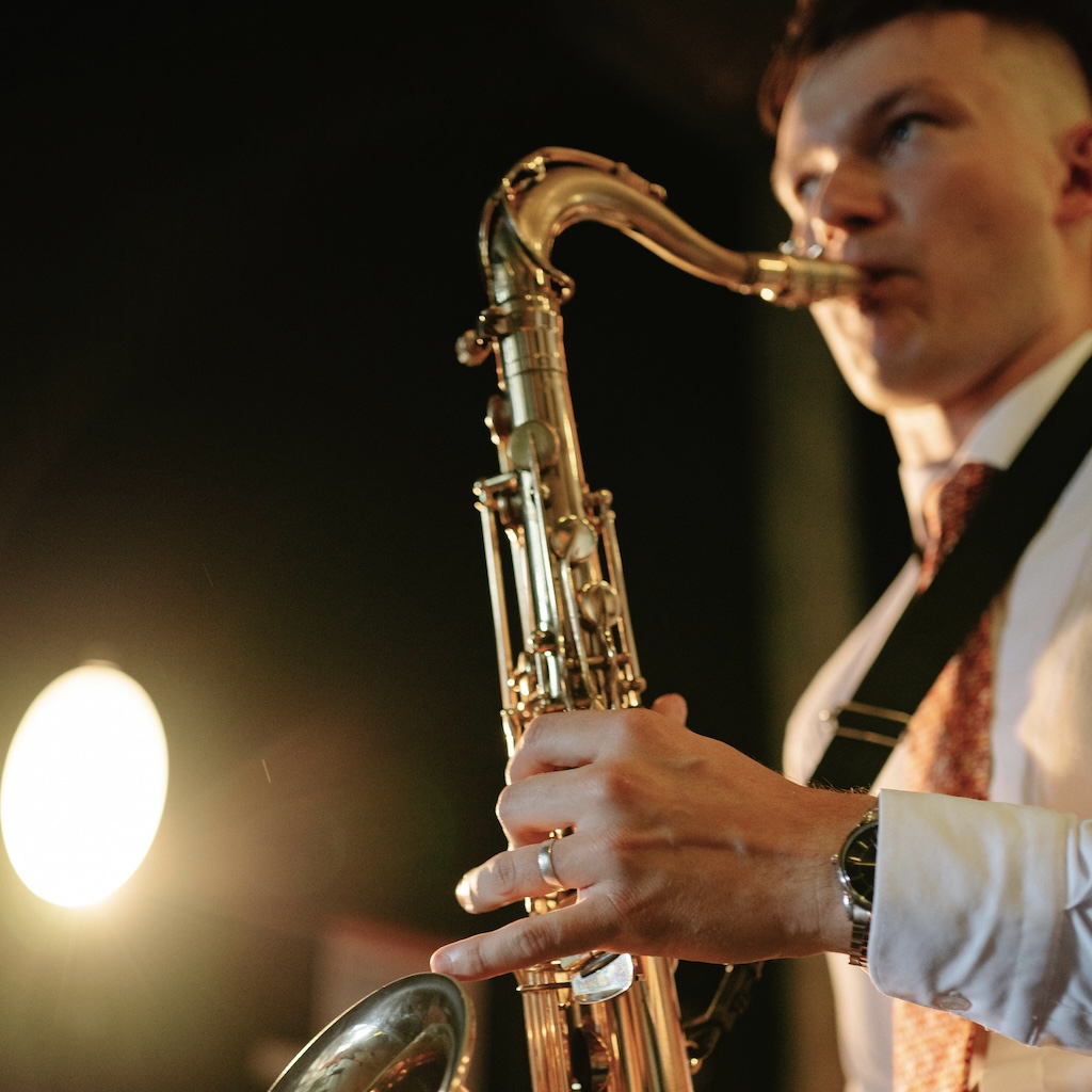 Ett fullskaligt band med blåsinstrument lyfter festen till nästa nivå.